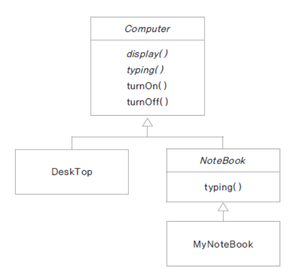 * Computer는 전체 클래스에 공통으로 쓸 turnOn, turnOff만 구현한다.