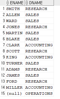 where e1.mgr=e2.empno(+); -- (+): null 값 포함