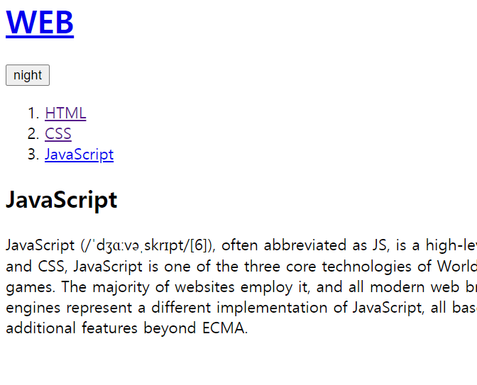 | onclick으로는 js가 온다. <style> 속성 값을 반드시 CSS가 온다. 웹 브라우저는 한 번 화면에 출력되면 자기 자신을 바꿀 수 없다. js는 사용자와 상호작용 하는 언어이다. js는 HTML을 제어하는 언어이다. |