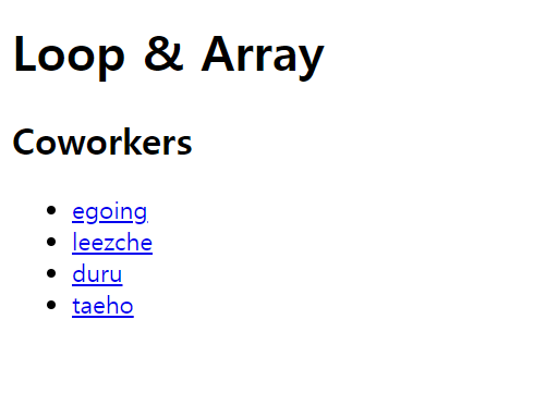 document.write(key+ ' : ' + coworkers[key] + '<br>')