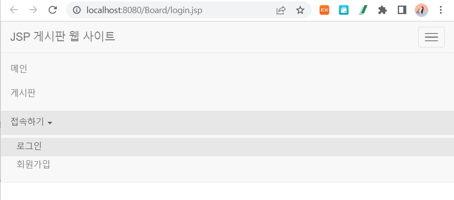 네비게이션과 로그인 양식 모양이 화면 크기에 따라서 모양이 달라지는 반응형 동작