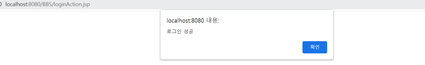 'loginAction.jsp'에서 아이디와 비밀번호가 모두 맞으면 '로그인 성공'이라는 알림창이 뜨게 설정 해 다음 창이 뜸.