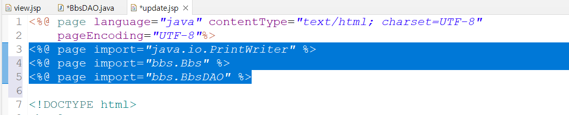 'write.jsp'를 복사해 'update.jsp'를 생성한다.
