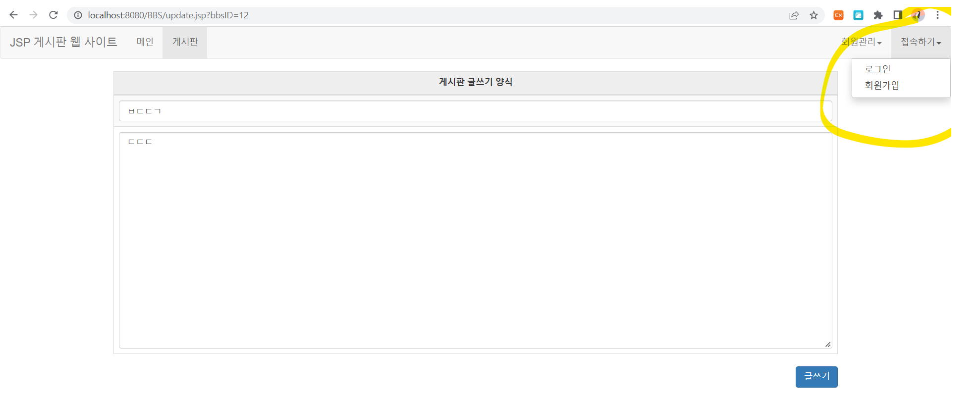<!-- 게시판 글 수정 양식 영역 끝 -->