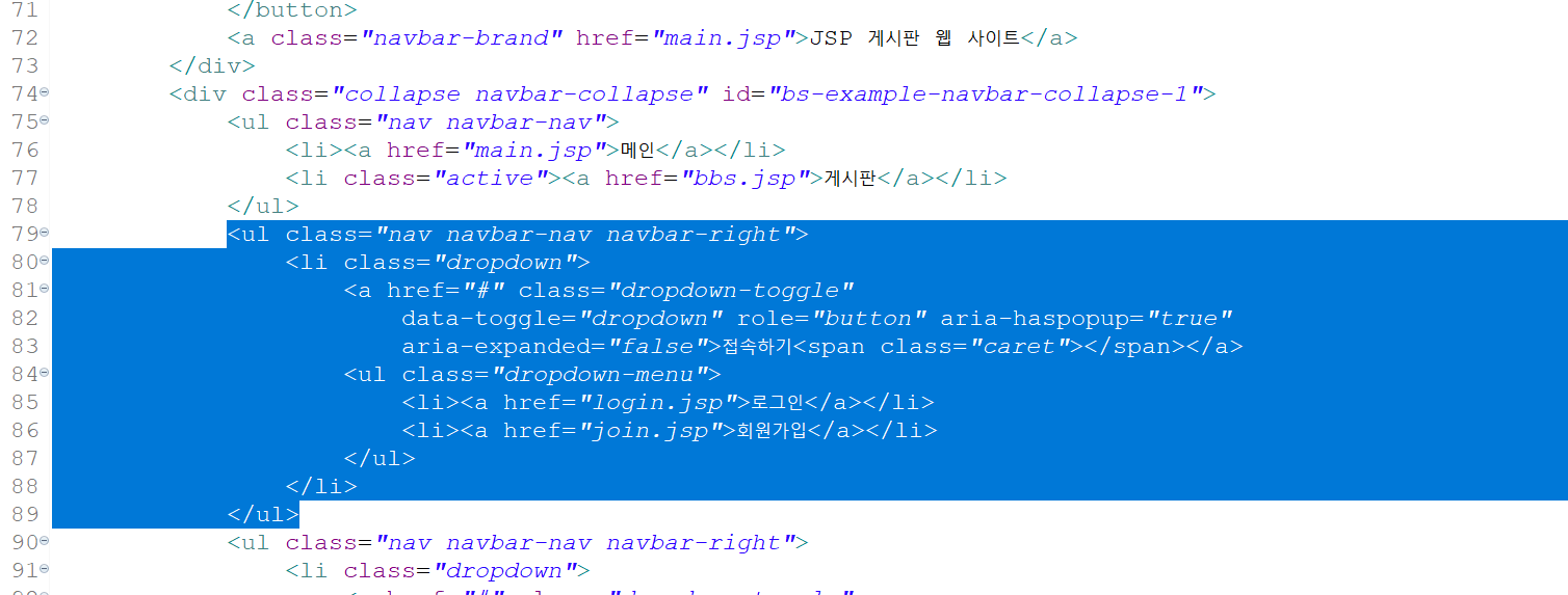 <li class="active"><a href="bbs.jsp">게시판</a></li>