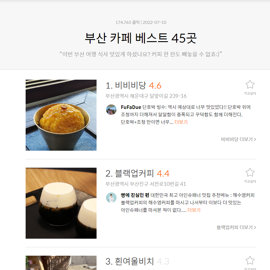 카테고리 하나에 여러 맛집 보여준다.