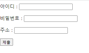 <p>주소 : <input type="text" name="address"></p>