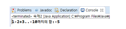 System.out.println("1-2+3..-10까지의 합: " + sum);
