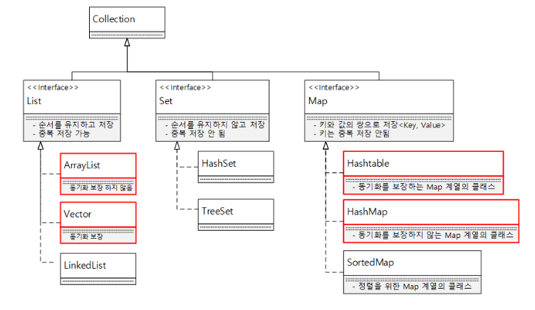 -배열의 문제점을 해결하고 자료구조를 바탕으로 객체들을 효율적으로 추가, 삭제, 검색할 수 있도록 java.util 패키지에 컬렉션과 관련된 인터페이스와 클래스들이 포함되어 있다.