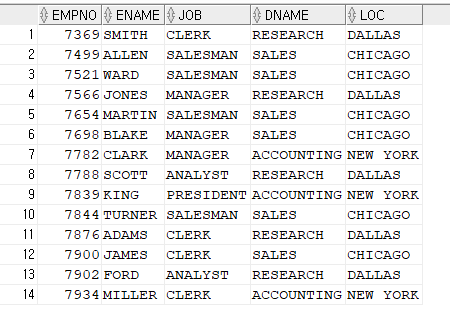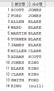 where e1.mgr=e2.empno(+); -- (+): null 값 포함