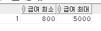 select min(sal) "급여 최소", max(sal) "급여 최대"