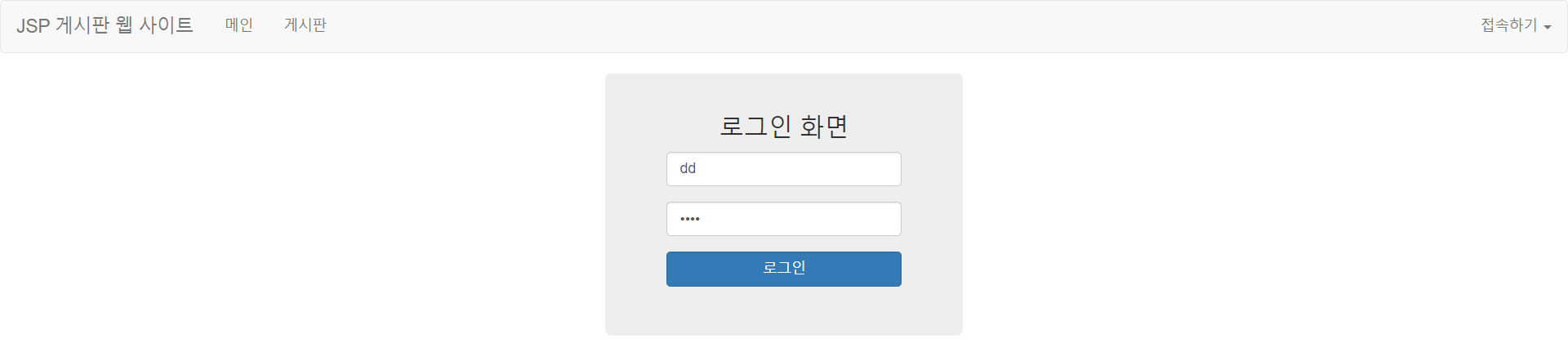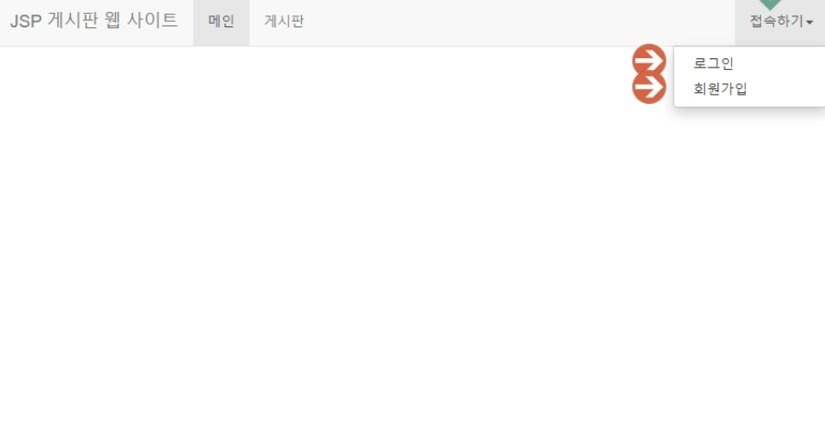 'main.jsp' 페이지를 실행 시켰을 때는 세션이 없기 때문에 우측 상단에 '접속하기'를 누르면