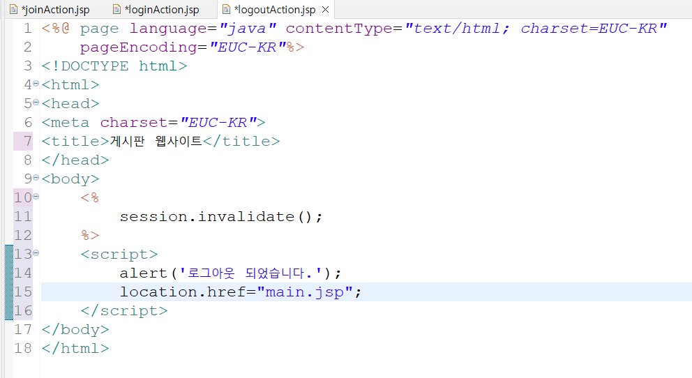 접속한 세션을 끊어주는 로그아웃 로직을 담당하는 페이지도 작성한다.