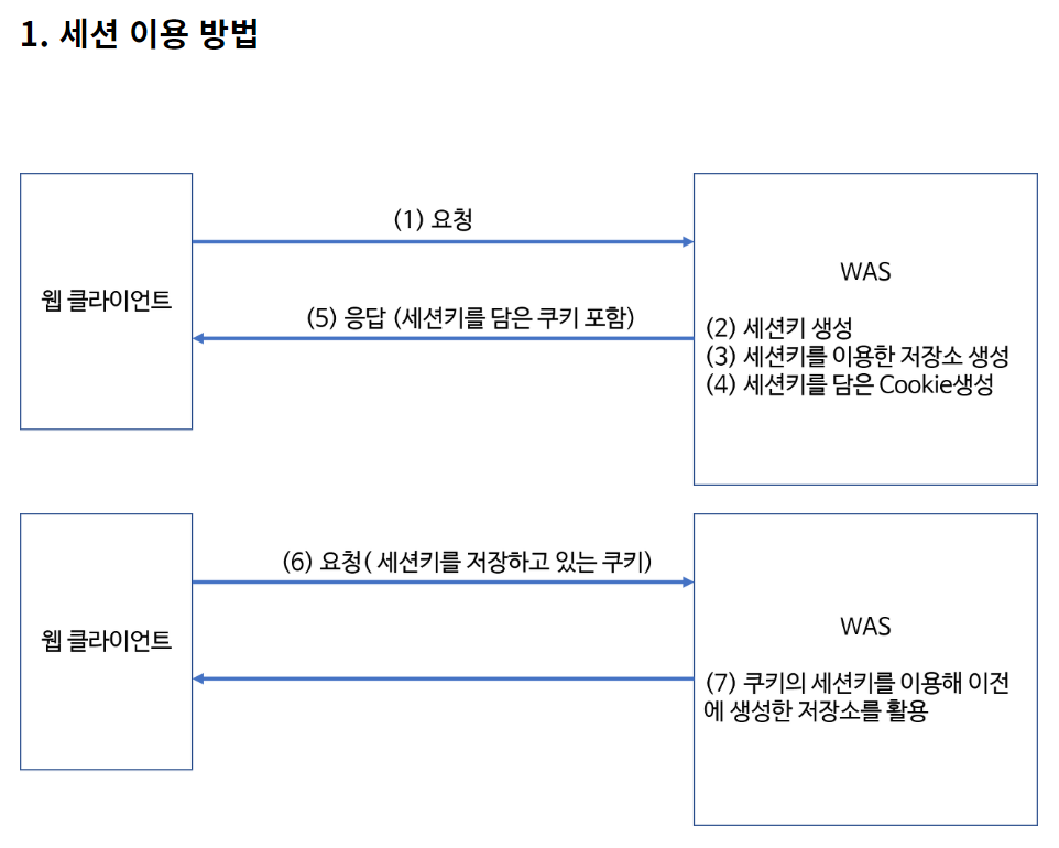 웹 클라이언트가 서버에게 요청을 보내면 서버는 클라이언트를 식별하는 session id를 생성한다.