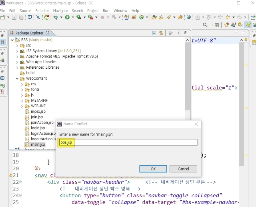 'main.jsp' 페이지를 복사해 'bbs.jsp' 페이지를 생성한다.