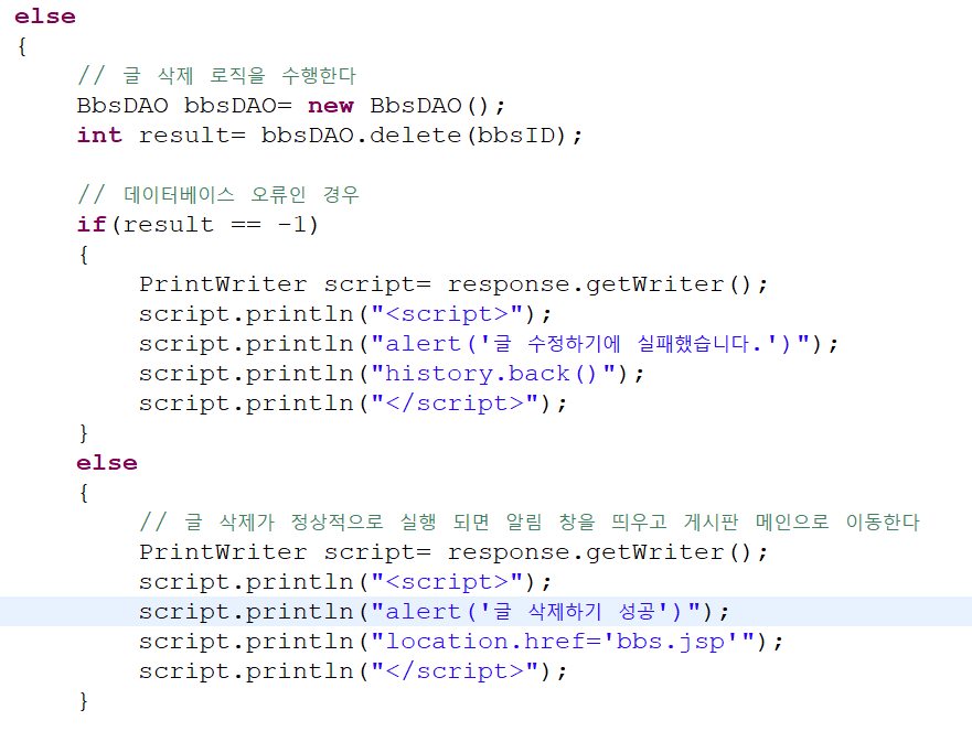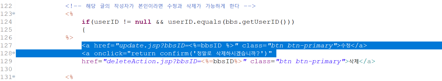 'view.jsp'에서 글을 삭제할 때 실수를 방지하기 위한 더블 체크 용 코드 추가한다.