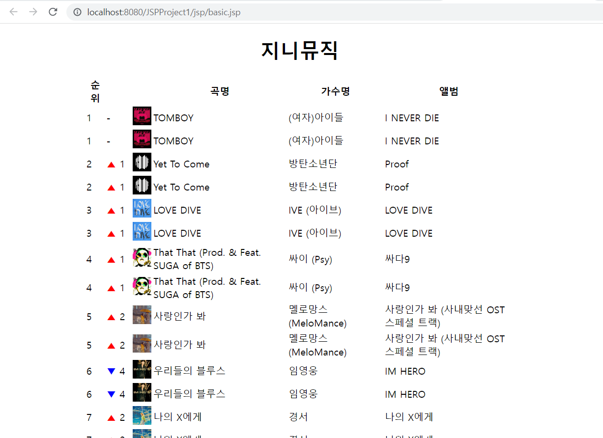 <td><%= vo.getSinger() %></td> <!-- 가수(singer) 출력 -->