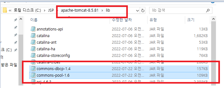 다음 파일 다운받아서 apache tomcat 폴더에 첨부한다.